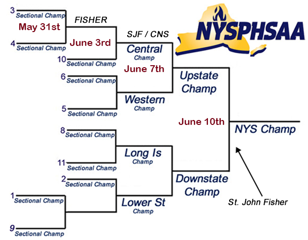 The semifinal games will be played at Webster Thomas on Friday, May 29th and the Championship game will be played at St. John Fisher College on Tuesday, June 2nd at 7:30pm.
