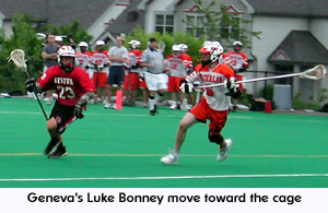 Scoring for Geneva were Luke Bonney (4g-1a), Dan Rago (2g), and Matt Warner 91g-2a). Greg Bonney scored (2g-1a), Mark Bloom (2g) and Dave Gillotte (1g) added to the score while Jake Queener (1a) and Craig McDonald (2a) added assists for Geneva. Nick Sharman (9s) and Matt Hannan (1s) combined for 10 saves for the Panthers.