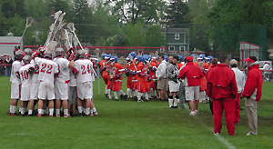 Fairport and Schroeder played two overtime periods to determine the Raiders as the winner, 11-10, when Nik Bryan scored at the 2:06 mark. Fairport, down 5-0 at the start, rallied behind the efforts of Bryan (4g), Ryan Lowe (2g-1a) and Pat Reilly (1g-3a). Tom Rynn, Pete Gibbons and Pat Van Hall each added 1g-1a for the Raiders. Bryan Sanna also added one goal for Fairport (9-7).
