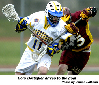 the top Class A team from Section Four, Ithaca, 10-3. Senior defensemen Dan Nielsen and Kyle Byron had strong performances in shutting down Ithaca’s leading scorers at attack and midfield. A key point in the game occurred at the start of the third quarter when the Eagles successfully killed off a two minute penalty.