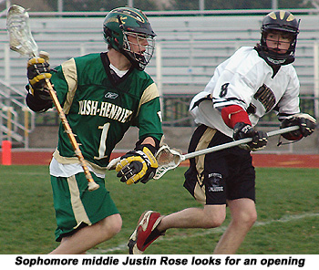 Each team scored three goals in the last quarter. R-H scored first at 11:46 with a goal by McShea (assisted by Gause). Sophomore middie Justin Rose scored an unassisted goal 0:41 seconds later. McQuaid Jesuit got back on the