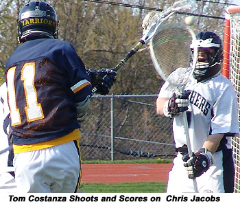 they would get. Schroeder went on a five goal streak starting at 7:08 with an unassisted goal by Tom Costanza, followed by a score by Grant Catalino (from his Tom Costanza) at 5:44. Ferry scored on a feed from Jason Cirulli at 4:01 and Tom Costanza finished the third quarter with two unassisted goals. The Warriors took an 11-5 lead.