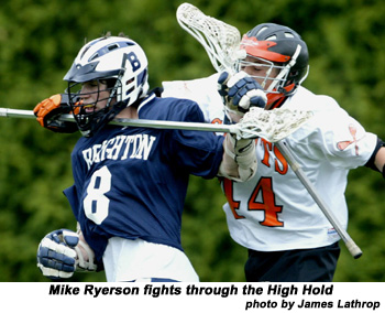 Livonia was assessed a three minute non releasable Illegal stick penalty at the top of the last quarter. Livonia’s man down team was up to the task stopping R-H’s extra man unit several times before the Comets scored on John Gause’s goal. R-H promptly followed Gause’s goal up with two more by Rose and McShea to take the win.