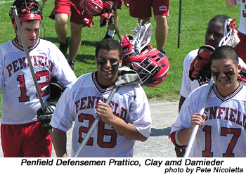 Tim Pfeffer (2g-3a) and Mike Thon (2g-2a) led the offense while Mike Cummins and Alex Del Pozzo added 2g-1a each. Mike Cummins and Alex Del Pozzo each scored 2g-1a and Trevor Rice and Kelly McKenna each added 1g-2a. Jason Knerr and Scott Serron each scored 2g while Mike Arvan added 1g-1a, Ben Foster recorded 2a and Dave Malone scored 1g for Penfield.