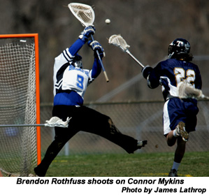 Thomas maintained control in the third quarter. Sophomore attackmen Max Gurowski scored first for the Titans with an assisted by Kevin Kemp. Kemp scored assisted by Rothfuss and Rothfuss scored assisted by Dan Hinderland. At the end of the third quarter the score was Thomas 7 Brockport 1. Thomas Goalie Steve Hondorf had a solid game in cage allowing only one goal over three quarters. Also playing well was the Titan Defense who continued to put pressure on Brockport all day.