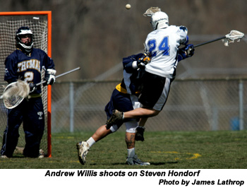 The Titan Defense played well all day. Sophomore face off man Pat Maloney was 10/14 for Thomas. Kurt DetWiller had 8 ground balls for the Titans. No report from Brockport.