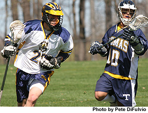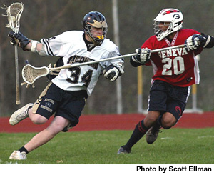Geneva tied the game at three when Elliot Heaton scored an unassisted goal at 8:40 on a post ground ball drive to the goal. The teams were tied at three at the end of the third quarter.