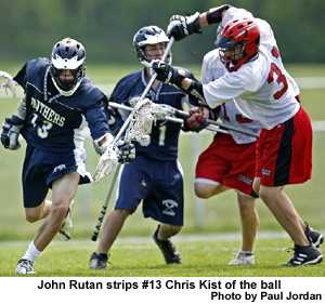 Scoring for Spencerport were Andy Morgan (7g-1a) who set a team record for goals in a game, Rob Stojanov (3g), Pat Decker (2g-2a), Steve Difulvio (4g-2a), Jeff Konko (2g-4a), Tyler Hintz (1a), Phil Schmid (2g), Steve Balcerak (1g) and Ken Bell (1a). Kyle Campion won 15-19 face-offs. Ryan Konko had 10 saves for the Rangers (9-5).