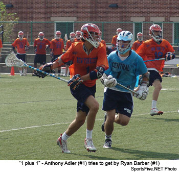 New York City scored the first two goals of the game at 7:38 and 2:58. Scott Margolis scored first followed by Max Van Bourgondien (with an assist by Anthony Adler). Central only took six shots in the first quarter, with only the final shot hitting the cage (and resulting in a goal). Matt Taylor, from behind the cage, found Mike Fetterly open on the crease to score with only 0:18 remaining. The score was 2-1 in favor of NYC at the end of one quarter.
