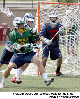 Western began this game a dominant force, winning the first two face-offs and controlling the ball in the offensive area of the field.