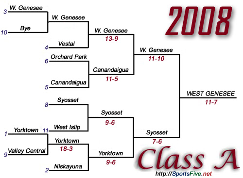 In two very exciting Class A games this afternoon it was West Genesee over Canandaigua 11-10 and Syosset who scored the last four goals of the game to win 7-6 over Yorktown. That means it will be West Genesee and Syosset in the Finals on Saturday.