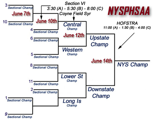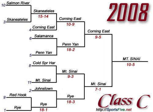 Penn Yan scored the first four goals, but Corning East regrouped and scored the next seven goals to capture the Upstate title and earn a trip to Hofstra for the finals on Saturday. The final score was 9-5. Mount Sinai had no trouble with Rye, winning 7-1 which sets up a Corning East vs Mount Sinai final at Hofstra.