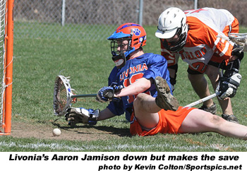 The Indians came back in the 3rd quarter with scoring 6 goals. Waterloo's Josh Mateo and Winston Boyd each had 2g to help take a 7-5 lead. Livonia’s defense, lead by junior goal keeper Aaron Jamison stepped up. “We played great team defense for most of the game,” said Livonia coach John Sciera. “I’m very proud of the way our kids stepped up. We were very patient defensively.”