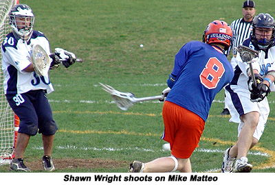 The second half belonged entirely to Livonia as Eastridge mounted an incredible number of penalties which resulted in the majority of ball time on the bulldog end. Livonia scored six goals while allowing only one from the Lancers (senior middie Kevin Kimber). Livonia saw second have goals from junior Scott Mosher, Wright, Britton, junior attackman John Dalberth and Hendrickson.